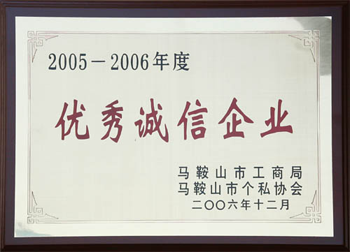 此次會議還對2005-2006年度市、縣級優秀誠信企業及優秀個體工商戶進行了表彰,我公司繼獲得2003-2004年度市級優秀誠信企業后,2005-2006年度再次獲得此項榮譽!