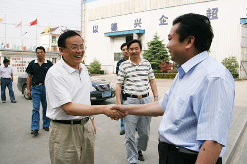 在鄭長玉董事長的陪同下,吳副書記等一行參觀了生產車間和成品車間并在公司會議室進行了座談。在了解了我公司的發展歷程、生產銷售、人才培養等情況后,吳副書記等人對公司近年來所取得的經營成績給予充分肯定。他指出,工業是民族經濟的支柱,尤其是機械設備工業是基礎中的基礎。在競爭日趨激烈的市場環境下,企業競爭力的提升關鍵要是靠人才的培養,關鍵是要靠科技創新能力的提升和不斷完善的服務體系。同時吳副書記還指出,企業要發展必須實施“走出去”戰略,參與國際經濟競爭與合作,努力開拓國際市場,提高國際市場占有率,在國際分工與合作中取得有利地位。